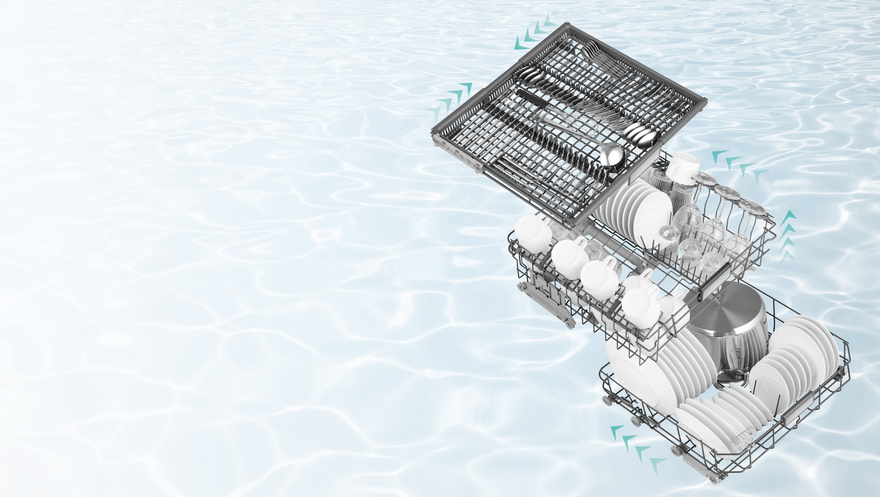Wash everything up in one load. With three baskets, enough space to stack up to 16 place settings and a flexible interior that can be reconfigured in different ways, you can fit every item in, saving you time and effort.